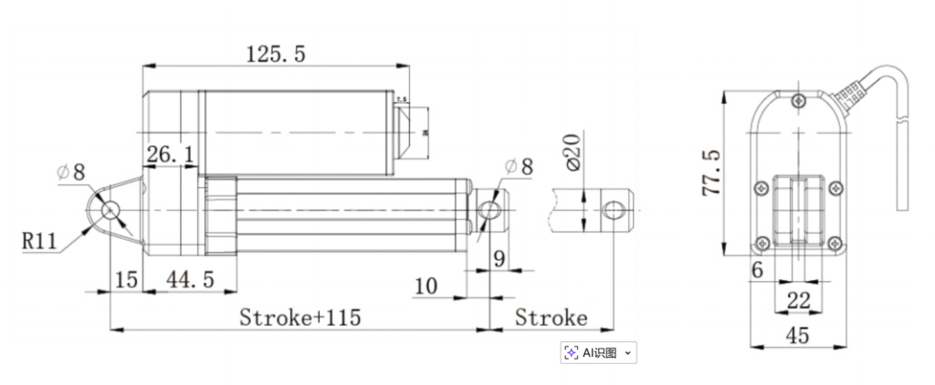 • Built-in dimension: Stroke + 115mm(+/-3)