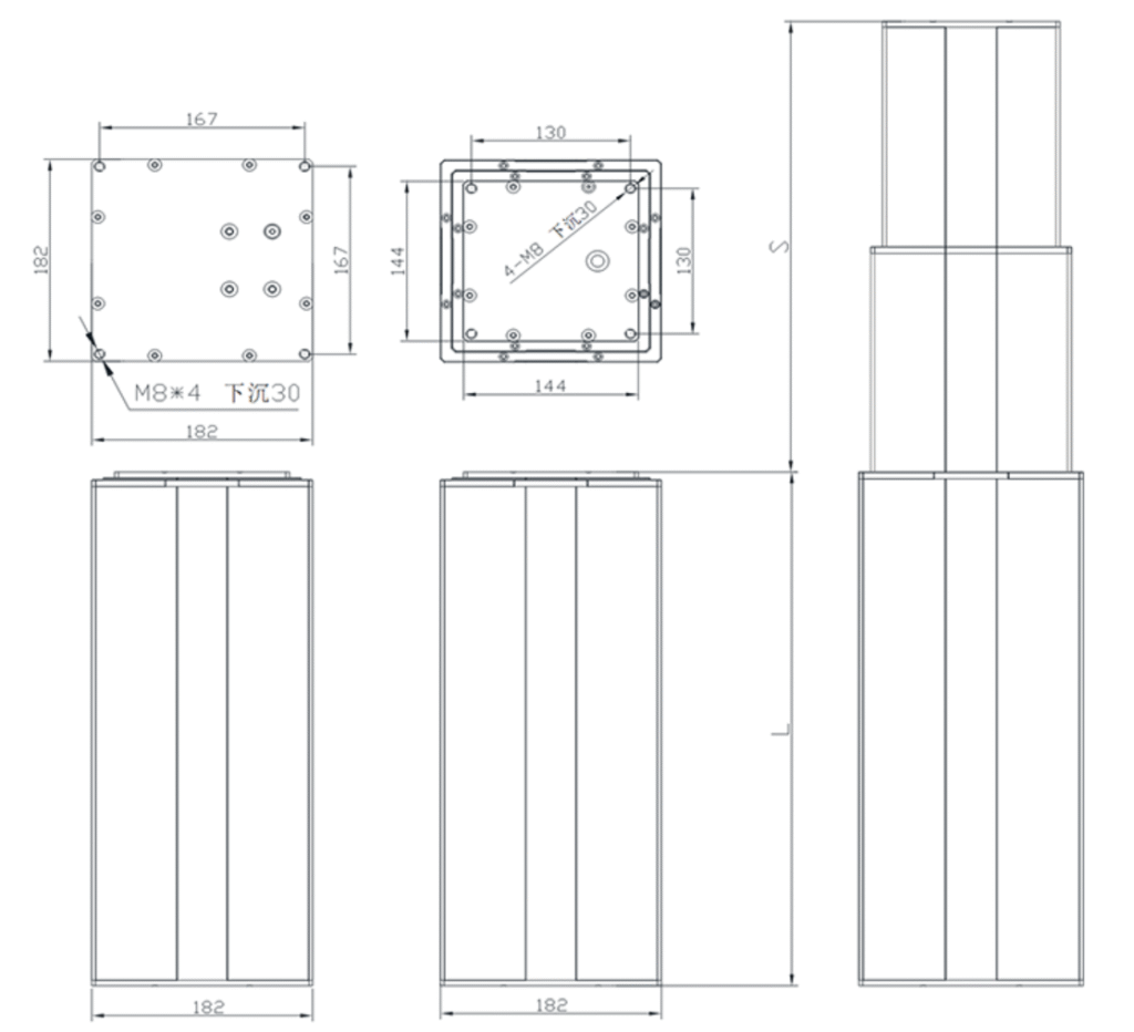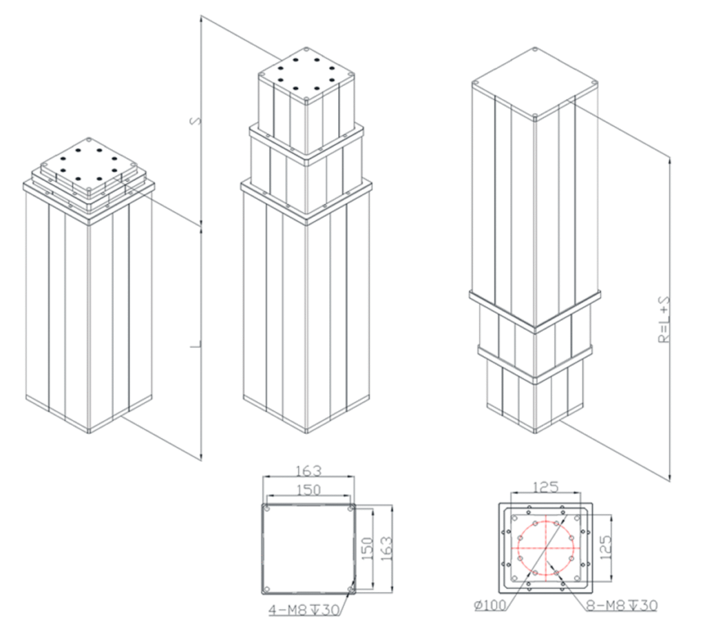 • Maximum outer tube size: three sections, 163*163mm(HTD3-16),182*182mm(HTD3-18), square