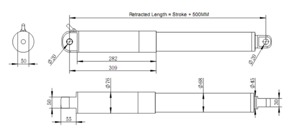 • Minimum size: travel/2+ 550MM